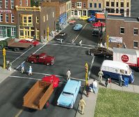 Modeling HO Scale streets is a quick and easy job with Walthers Cornerstone Street System kits. |